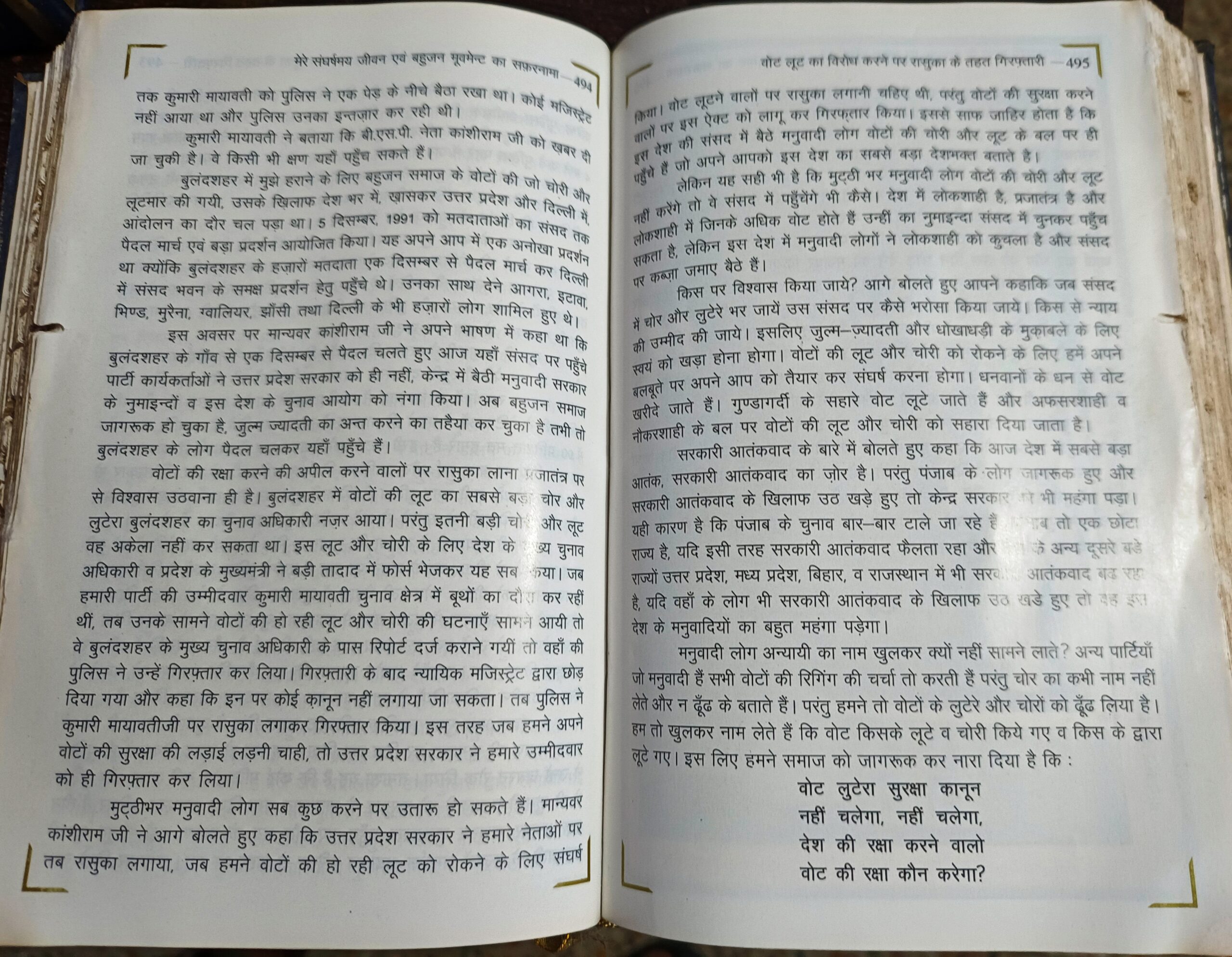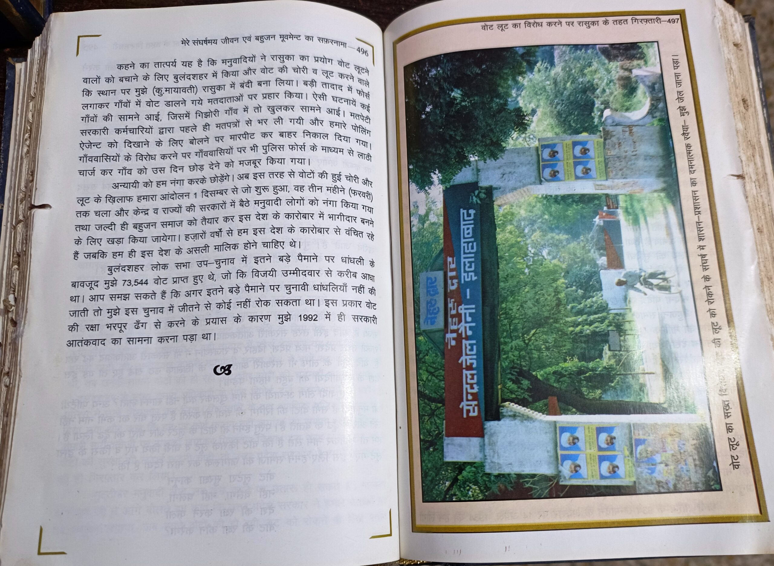 बसपा सुप्रीमो मायावती ने आगे लिखा कि बुलंदशहर के उपचुनाव में व्यापक पैमाने पर हुई वोट चोरी और धांधली के बावजूद 73544 वोट मिले। अगर चुनाव में व्यापक पैमाने पर धांधली नहीं होती तो मुझे चुनाव जीतने से कोई नहीं रोक सकता था। इस प्रकार वोट की रक्षा भरपूर ढंग से प्रयास के कारण मुझे 1992 में ही सरकारी आतंकवाद का सामना करना पड़ा था।