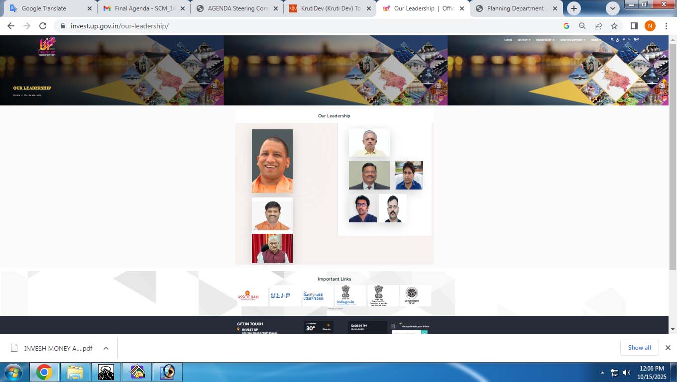 दूसरा विभाग है इवेस्ट यूपी। अवस्थापना और औद्योगिक विभाग में अपर मुख्य सचिव आलोक कुमार और इन्वेस्ट यूपी के सीईओ विजय किरन आनंद जैसे दिग्गज आईएएस अफसर तैनात हैं। लेकिन बीते 19 सितम्बर 2025 को अवस्थापना एवं औद्योगिकी विकास आयुक्त दीपक कुमार हो गए हैं। लेकिन अगर आप इवेस्ट यूपी की वेबसाइट खंगालेंगे तो (https://invest.up.gov.in/our-leadership/) आईआईडीसी के पद पर अभी भी मुख्य सचिव शशि प्रकाश गोयल का नाम चल रहा है।